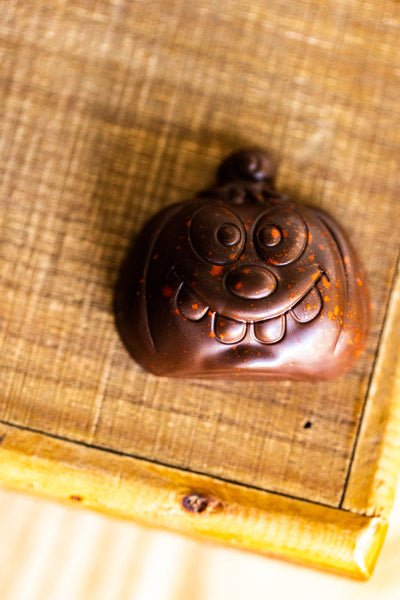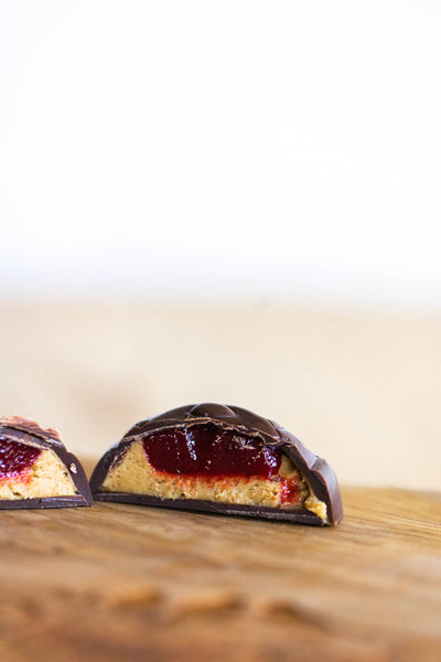 đ An elegant twist on a classic favorite. Our handcrafted pumpkin-shaped PB&J confections combine silky, house-made peanut butter with a jewel-like layer of raspberry pâte de fruitsâan artisanal fruit confection bursting with vibrant flavor. Each piece is finished with a playful dusting of Halloween colors, blending sophistication with seasonal fun.