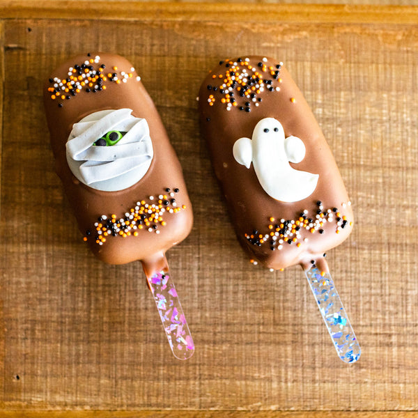 🎃 Our fluffy vanilla bean marshmallow has been transformed into a spooky-sweet treat on a stick—a favorite for kids (and secretly loved by adults too!). Each one is dipped in our signature chocolate (or your choice of chocolate) and finished with festive Halloween sprinkles and a frightfully fun sugar topper. Perfect for parties, trick-or-treating, or just a little haunted indulgence!